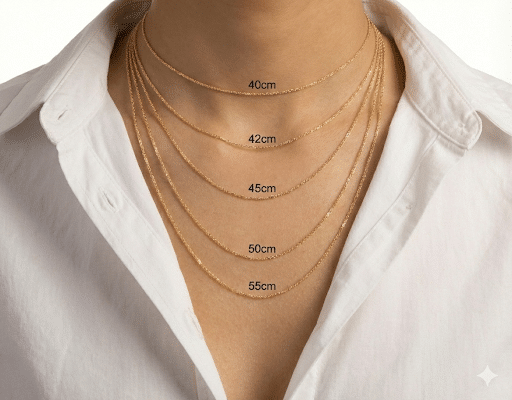 שלב ראשון חישבי באיזה אורך תרצי את השרשרת והאם היא הולכת להשתלב עם שרשראות נוספות, כדאי לקחת בחשבון שהאורך הוא לשרשרת בלבד ולא כולל את התליון.