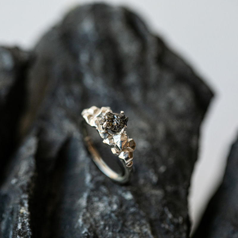 יופי שנחצב בחומר קולקציה המהללת את היופי הגולמי והראשוני של כדור הארץ. העיצובים מציגים זהב וכסף המפוסלים כצוקים פראיים וכשברי סלעים, החובקים בתוכם אבני חן ויהלומים גולמיים (Raw Diamonds). הניגוד הדרמטי בין טקסטורת ה"סלע" המתכתית המחוספסת לבין האבנים המשובצות יוצר תכשיטים בעלי נוכחות עוצמתית ויציבה. התחושה: עוצמה, יציבות, וחיבור עמוק לאדמה.