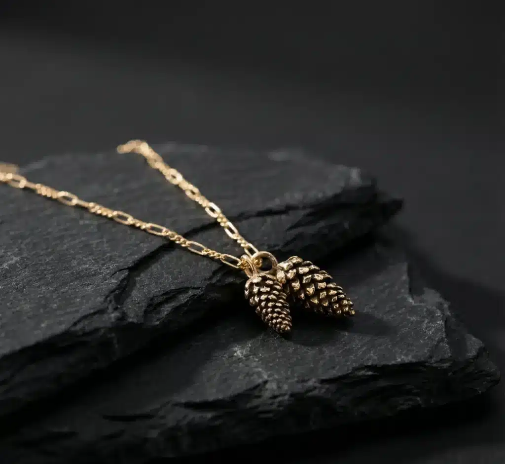 סודות ממעמקי היער תכשיטים הנושאים עמם את הניחוח והשקט של היער. הקולקציה מתמקדת בטקסטורות ריאליסטיות ועשירות של אצטרובלים וענפים, המעניקים למתכת מראה אורגני וכמעט "חי". השילוב בין פיתוחי הענפים לבין אבני החן הכהות יוצר מראה מסתורי, קלאסי ועל-זמני. התחושה: חמימות, טקסטורה עשירה ומסתורין טבעי.