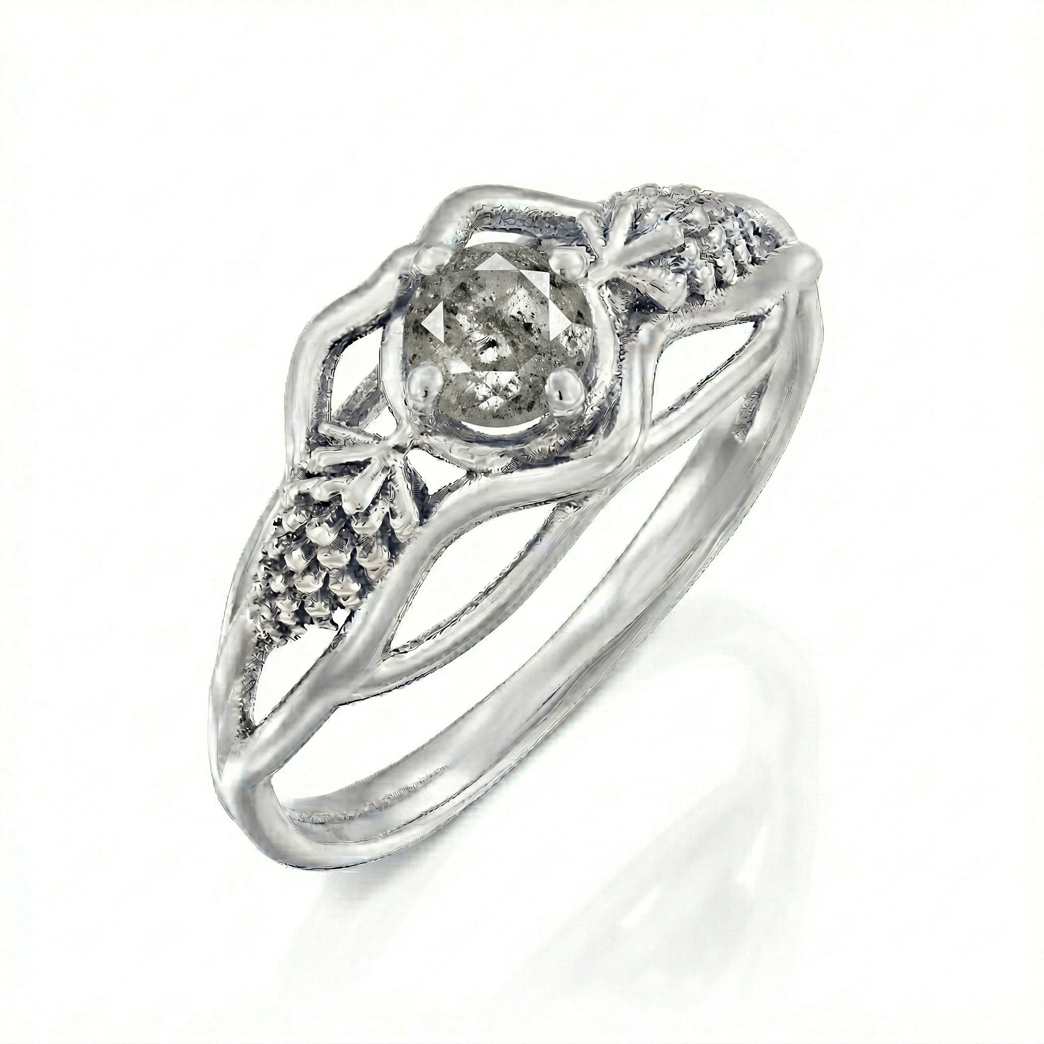 טבעת זהב ענף 14 קראט עם יהלום Salt & Pepper