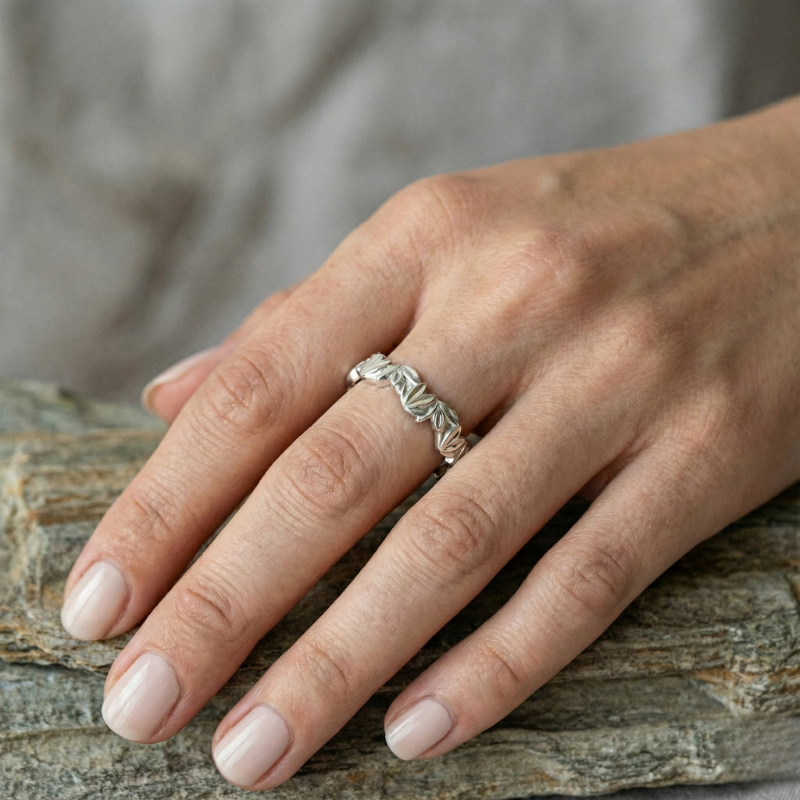 טבעת עלי שלכת כסף סטרלינג