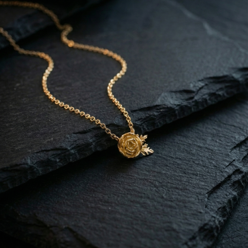תליון קטן ומדויק של פרח הנורית עם עלה קטן בצד עדין, מתוק ומיוחד